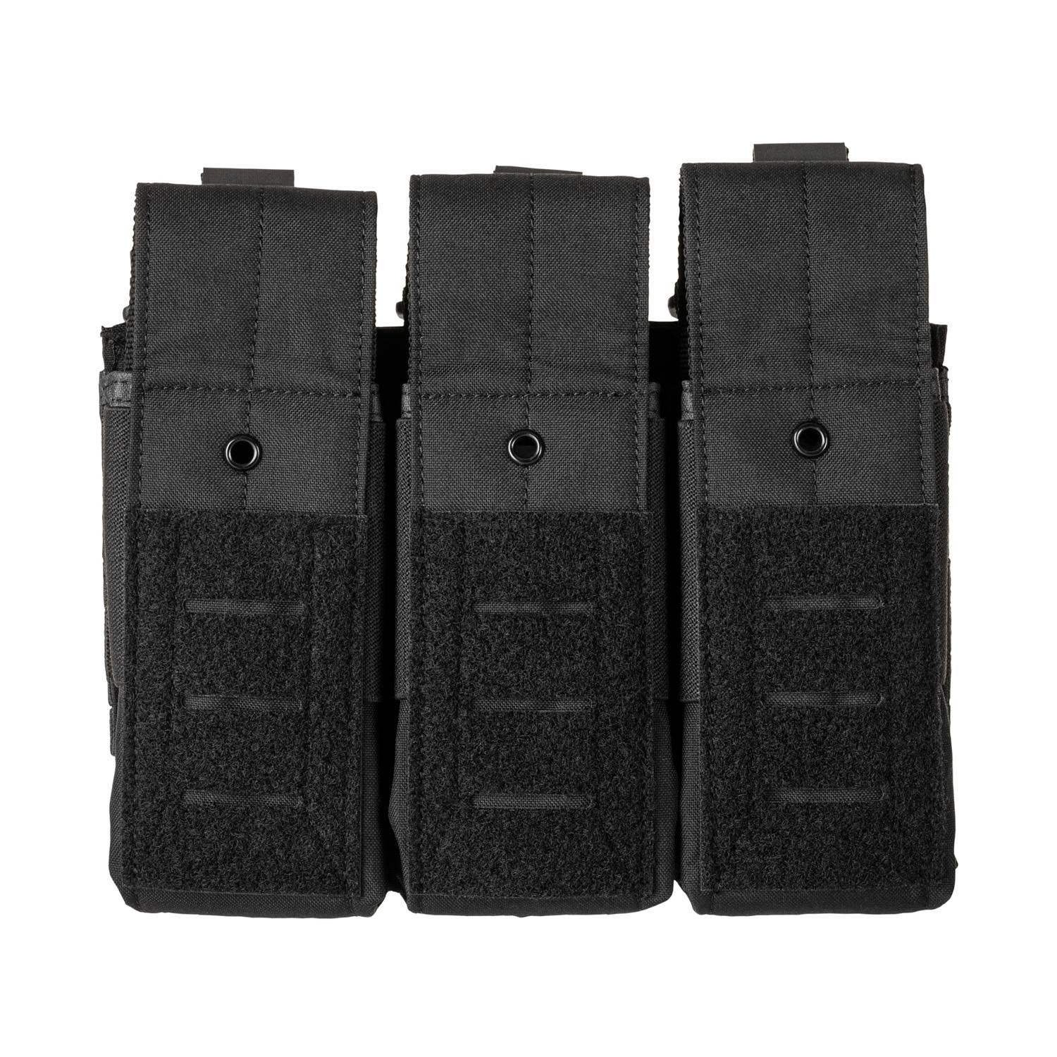Have three AR mags at the ready with the 5.11 Flex Triple AR Mag Cover Pouch. This AR mag pouch features Flex-HT™ TPU-coated straps to make it easy to weave onto any platform and a dual-purpose cover flap for closed or open-top configuration. The double layer of 500D nylon on the front and bottom increases durability, while the eyelet and webbing loops allow for optional Pouch Bungee Kit attachment. This AR magazine holder also has elastic compression at the sides, a Hypalon® pull tab, and a Duraflex® G.C. snap to securely hold three AR mags in place and allow for an easy draw.