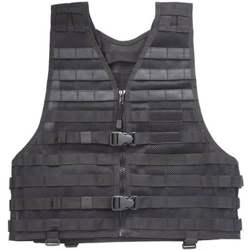 If you are looking for a load-bearing vest designed for special operations and tactical situations, look no farther. In partnership with Kyle Lamb, 5.11 Tactical Series has produced the ultimate load-bearing platform. The LBE Vest is made from a stiffened mesh that provides the necessary structure for all your gear, yet allows air in for ventilation and breathability. The LBE Vest has hidden document pockets and is fully compatible with VTAC Slickstick™ pouches or standard molle gear. A grab handle is located on the interior of the vest, not visible to an outsider, but there if you need it. A hydration pocket is also located on the interior of the back of the vest. The LBE Vest is adjustable in girth and length and is available in Regular and 2XL+ sizes. We use only quality YKK® zippers and high quality high impact plastic clips.