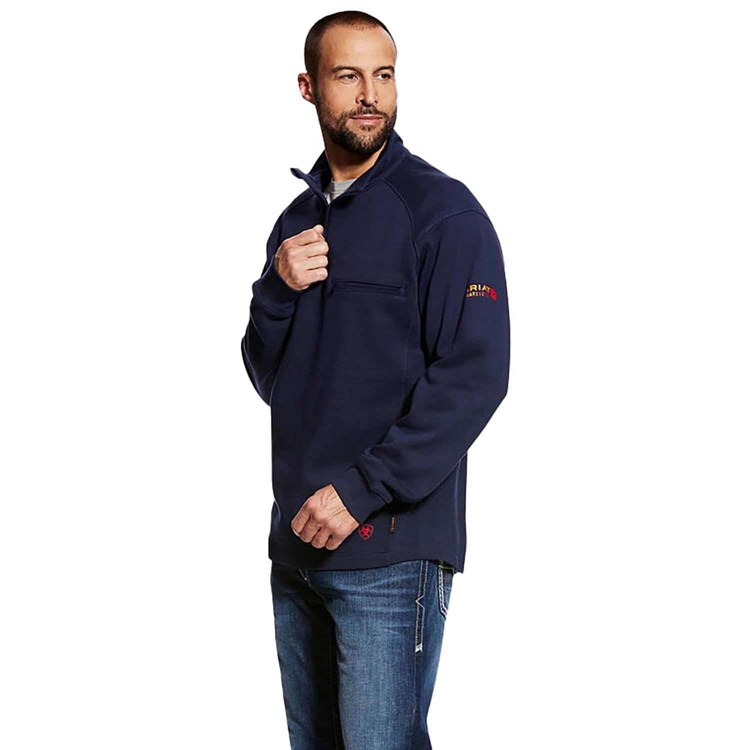 The Ariat FR Rev 1/4 Zip Top is the ideal choice for staying warm and protected in hazardous work environments. With a flame-resistant design, this top provides essential safety on the job site. It features underarm gussets and ergonomic seam design to enhance range of motion, allowing for ease of movement even during demanding tasks.