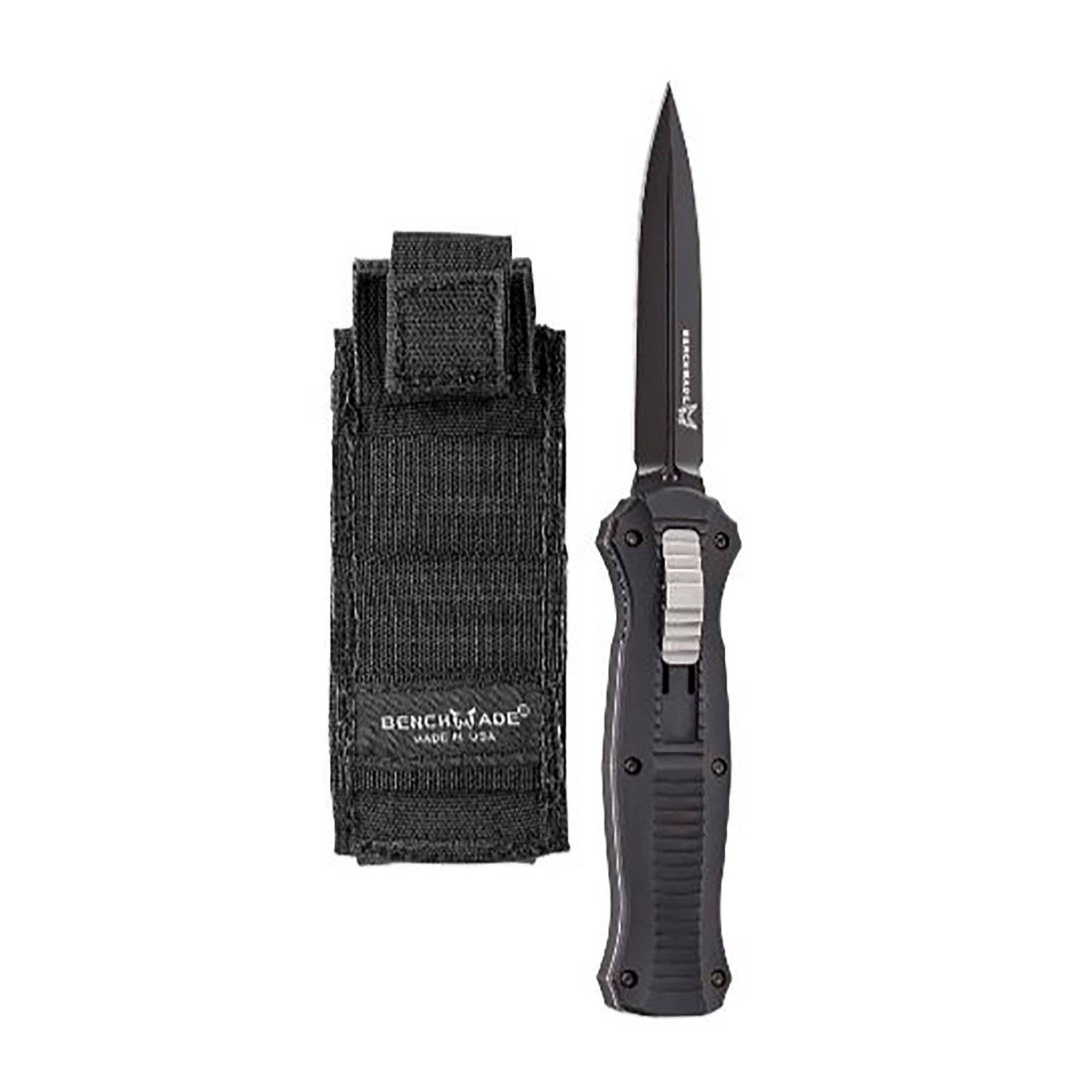 The Benchmade Infidel Dagger Knife is an incredibly fast OTF knife that withstands any challenge. This tactical knife features a D2 double-edge dagger blade and allows for deep-carry with its MOLLE-compatible Malice clip. When deployed, the spring-loaded flippers securely lock the blade in place with a push of the switch.