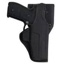 The Model 7115 top draw, standard ride duty holster offers a straight drop carry with Bianchi Tension Strips™, molded inside the holster for added weapon retention. It has a thumb snap closure, closed muzzle design and jacket slot belt loop. The Sight Channel™ offers a guide to protect the front sight as the gun is drawn. AccuMold® technology offers a precisely molded fit, with a ballistic weave exterior and soft, poly-knit Coptex™ lining that helps protect the gun’s finish. Patented