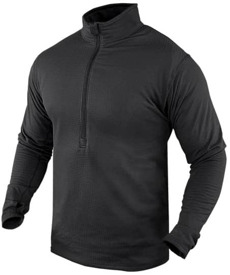Fleece is a superior insulating material because its synthetic fibers trap a large amount of air for its weight. The CONDOR Base II Pullover is a prime example of an effective fleece mid-layer. The grid fleece pattern is designed to provide warmth while also enhancing breathability, creating air channels that help move moisture away from your body. The zippered collar allows you to vent excess heat or seal in warmth as needed.
