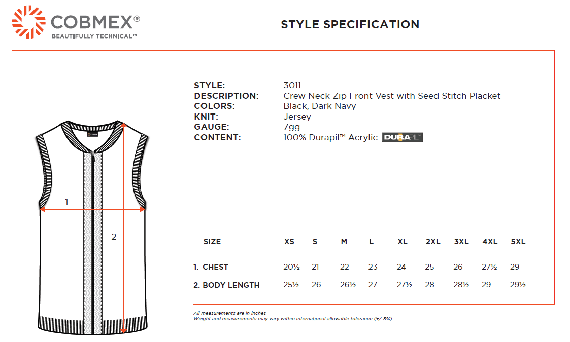 The Cobmex Unisex Crew Neck Zip Front Vest delivers professional style with practical functionality. Crafted from 100% Durapil™ Acrylic, this pill-resistant, heavyweight knit vest features a zip-front closure, seed stitch placket, and convenient pockets, making it a reliable layering piece for uniformed professionals.
