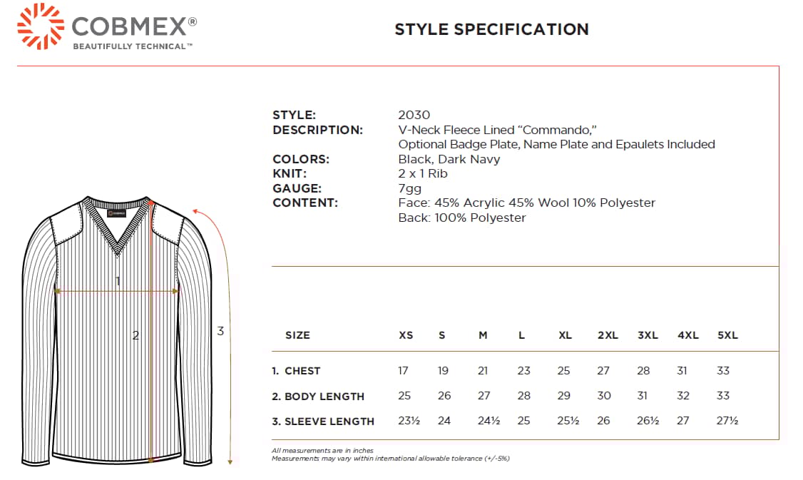 The Cobmex Unisex V-Neck Fleece Lined "Commando" is designed for durability with a ribbed knit construction that ensures long-lasting performance. Its fleece backing provides exceptional warmth, making it ideal for cold conditions. Built to withstand wind and water, this sweater offers reliable protection for all-day comfort. Trusted by law enforcement, EMTs, and fire services, it’s a dependable choice for professionals in demanding environments.