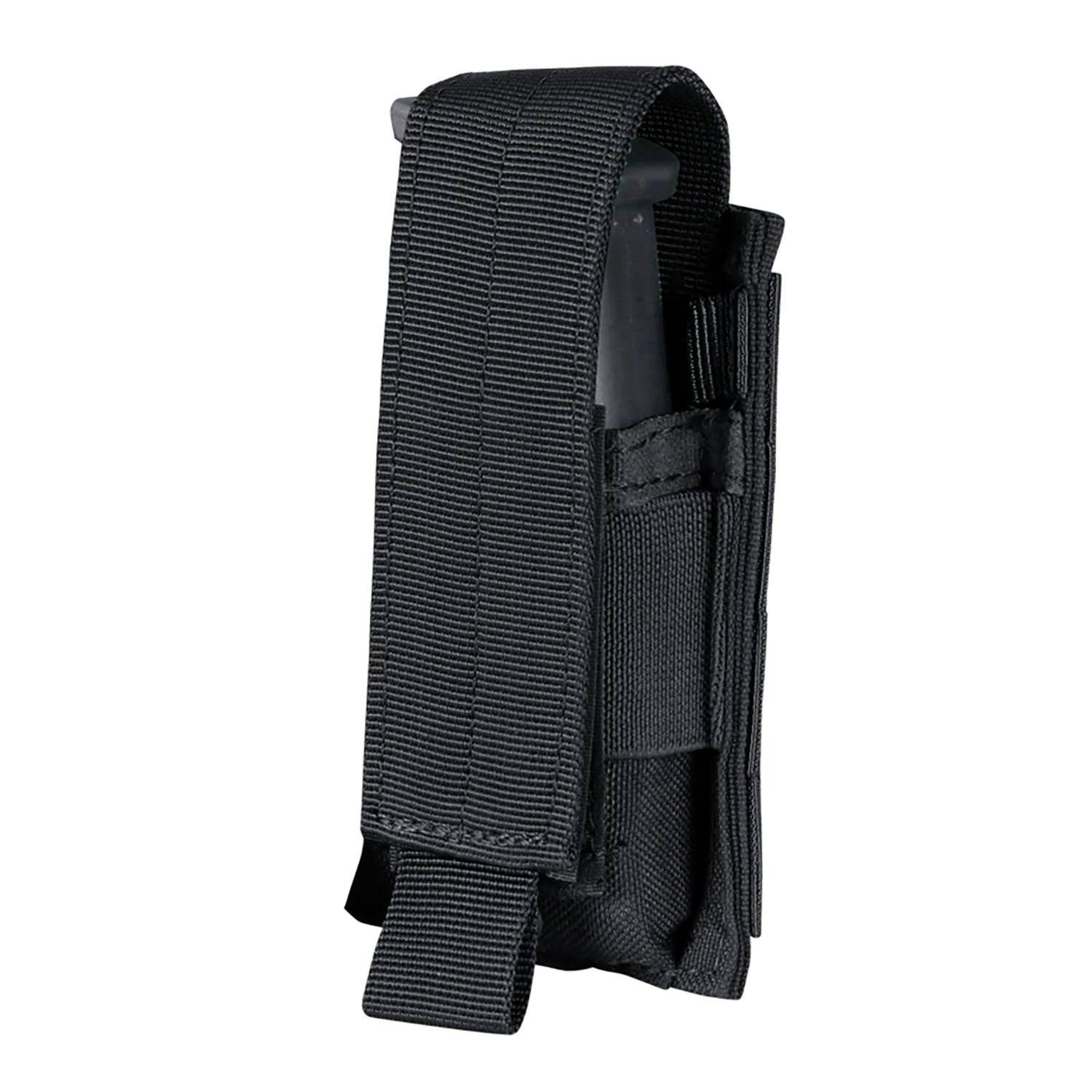 The Condor Single Pistol Magazine Pouch is a universal gear that fits almost all pistol magazines. Constructed with essential elastic retention and an adjustable top hook-and-loop flap, your magazine stays secure. It can be tucked away for an open-top configuration when needed. This pouch is not limited to magazines but can conveniently store compact tools, flashlights, or folding knives.