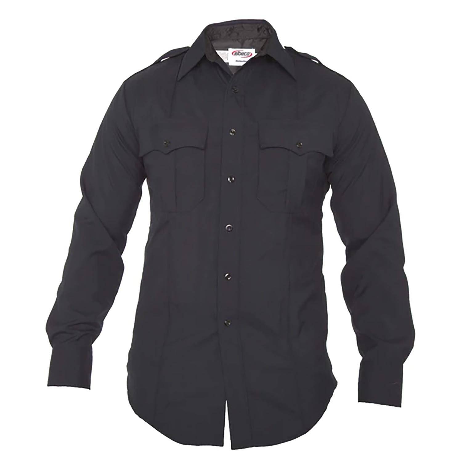 The Elbeco Distinction Men's Long Sleeve Shirt is the epitome of the next-generation poly/wool uniform, offering enhanced functionality and storage while maintaining a crisp and professional appearance. This shirt is designed to provide exceptional comfort and performance, meeting the demands of modern jobs. Enhanced flex underarm mesh vents increase ventilation and range of motion, ensuring air circulation and freedom of movement. The dual communication wire access openings in side seams conceal and contain wires for practical and organized use. The dual-access chest pockets also feature top and side utility compartments for added storage capacity. The hidden zip front closure provides an easy and tapered closure system, adding to the overall professional look and feel.