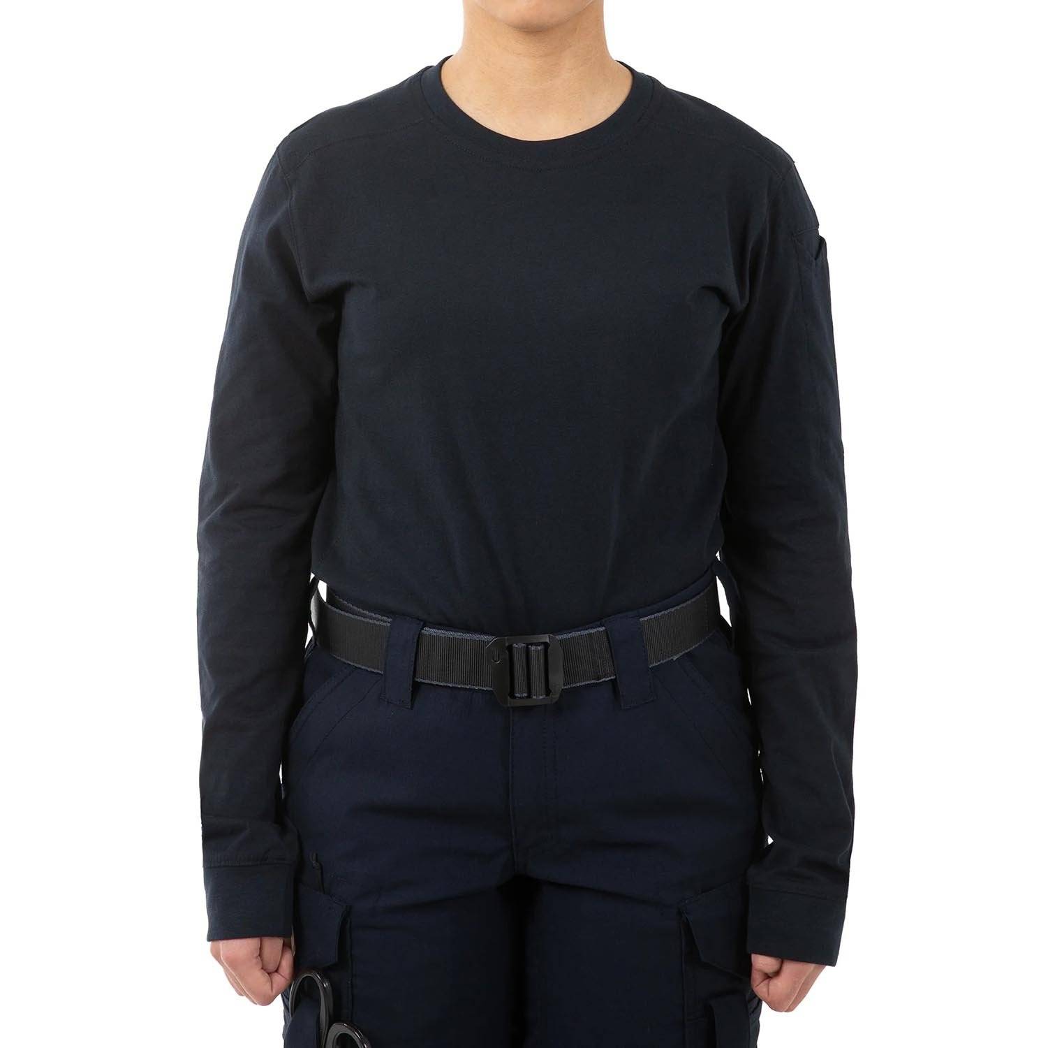 The First Tactical Women's Tactix Cotton Long Sleeve T-Shirt is designed to endure with fade and shrink-resistant 100% cotton jersey knit. It features a sleeve pen pocket and an optimized women’s fit for added comfort. The running gusset and offset seam enhance flexibility and a sleek look, making it an essential addition for law enforcement and tactical clothing.