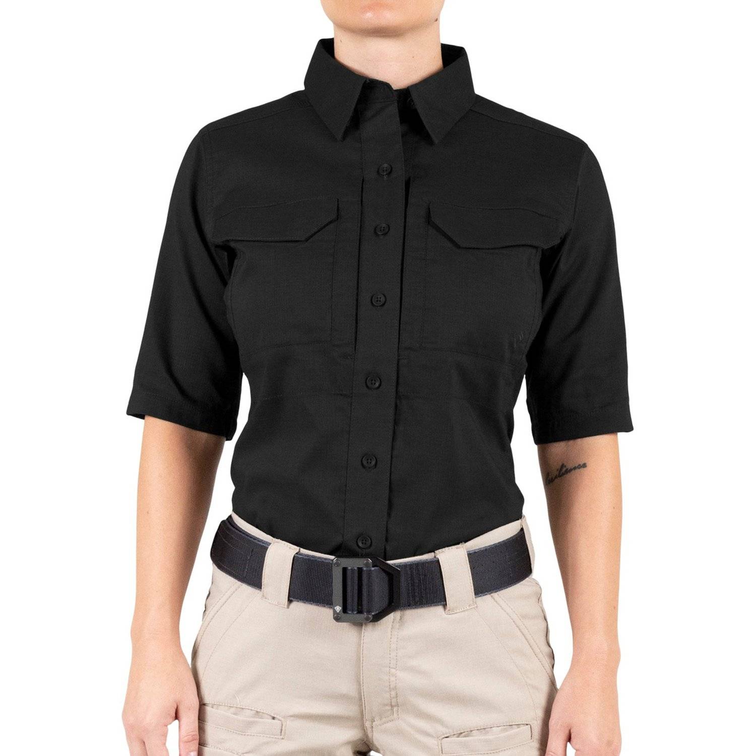 The First Tactical Women’s V2 Tactical Short Sleeve Shirt is packed with all the performance enhancing features that public safety professionals need to tackle any situation. This tactical shirt is made from a durable mechanical stretch fabric with gusseted underarms and is treated with Double Dye Technology for extended color protection up to 50 washes. The sleeves of this button-down shirt can be rolled up twice to keep you cool while the elbows are articulated to easily accept elbow pads.