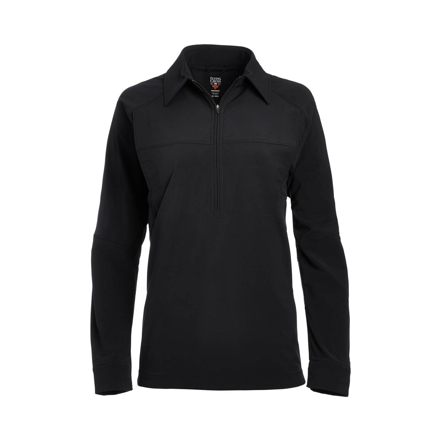 The Flying Cross Women's DutyGuard LT Pullover is expertly crafted for use with external vest carriers, providing a perfect solution for cooler duty days. Featuring a professional sport collar tailored for women, this Pullover is built with 4-way stretch fabric and a DWR coating, granting superior moisture resistance for versatile weather conditions.