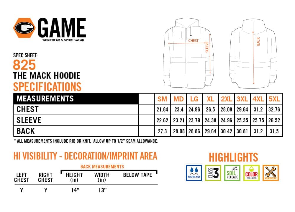 The Mack Hi-Vis Hoodie by Game Sportswear combines superior visibility with dependable warmth for duty professionals and field crews. Made from 100% spun polyester fleece, this ANSI/ISEA 107-2015 Class 3 hoodie features 2S silver reflective tape for enhanced visibility. The pullover design includes front hand-warmer pockets, an adjustable drawstring hood, and stretch-knit cuffs and waistband for all-day comfort during demanding work environments.