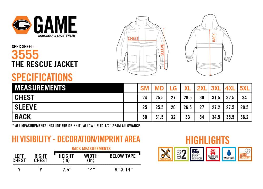 The Game Rescue Jacket delivers dependable weather protection and adaptable functionality for emergency responders. The outer shell meets ANSI/ISEA 107-2020 Class 2 visibility standards and is built from 100% polyester PU-coated breathable fabric for waterproof, wind-resistant performance. Dual zippered storage pockets, a radio pocket, and hand-warmer compartments offer convenient access to gear, while abrasion-resistant shoulder panels enhance durability. The fleece-lined collar and detachable peaked hood add warmth and protection against the elements. The inner jacketQconstructed from soft polar fleece with taslan nylon accentsQfeatures multiple storage pockets and an adjustable hem for a secure fit.