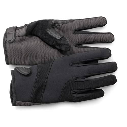 This Hatch original design offers excellent protection from cuts and sharp objects over the entire hand and features a 9 oz. DuPont™ KEVLAR® fiber interlock liner in the inside of the hands and fingers as an extra safeguard. The backs of these law enforcement gloves allow for air circulation and a snug fit.