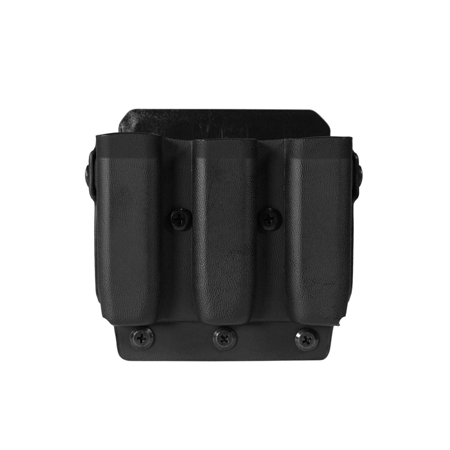 The High Speed Gear Uniform Triple Pistol Mag Carrier provides a sleek and efficient solution for carrying up to three pistol magazines. Made from durable Kydex, it features adjustable retention, a flared mag well for quick indexing, and versatile mounting options.