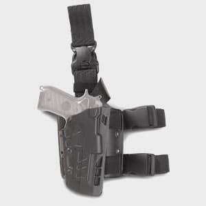 The Safariland 6360 ALS/SLS Level III Mid Ride Duty Holster has over 20 options for finishes and hand orientations as well as it fits 70 different types of weapon models. This duty holster’s slim and compact design comes with a standard hood guard and an ALS securing system.