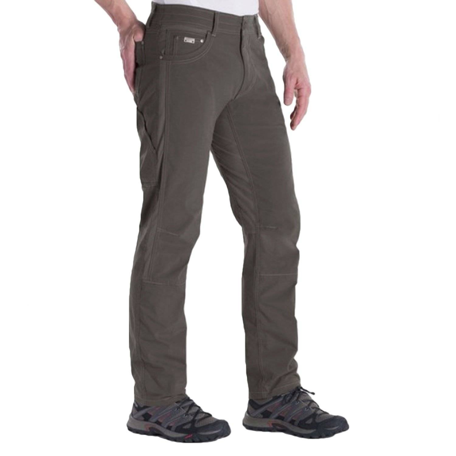 The Kuhl Men's Radikl Pants features a cutting-edge and patent-protected combination of an exoskeleton woven cloth frame with flexible, alternate knit panels. The result is a revolutionary pant that delivers maximum technical performance and ultimate comfort. Woven frame creates structure to give the RADIKL PANT the appearance, strength and performance of a traditional hiking pant. Located at key points of contact and flexion - crotch, yoke, front pockets, and side panel from waistband to just below the knee - the knit panels create the feel and movement of a sweat pant.