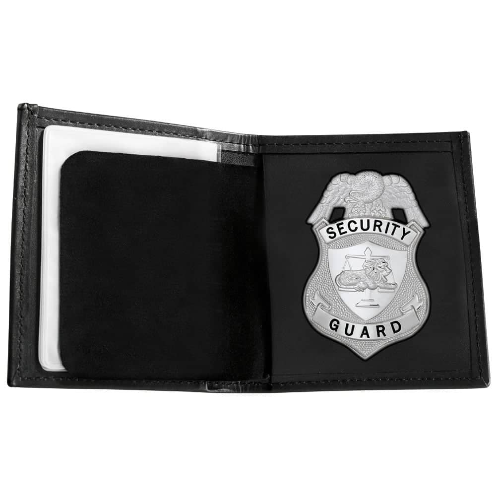 Bi-fold Badge/ID case constructed with durable black top grain leather