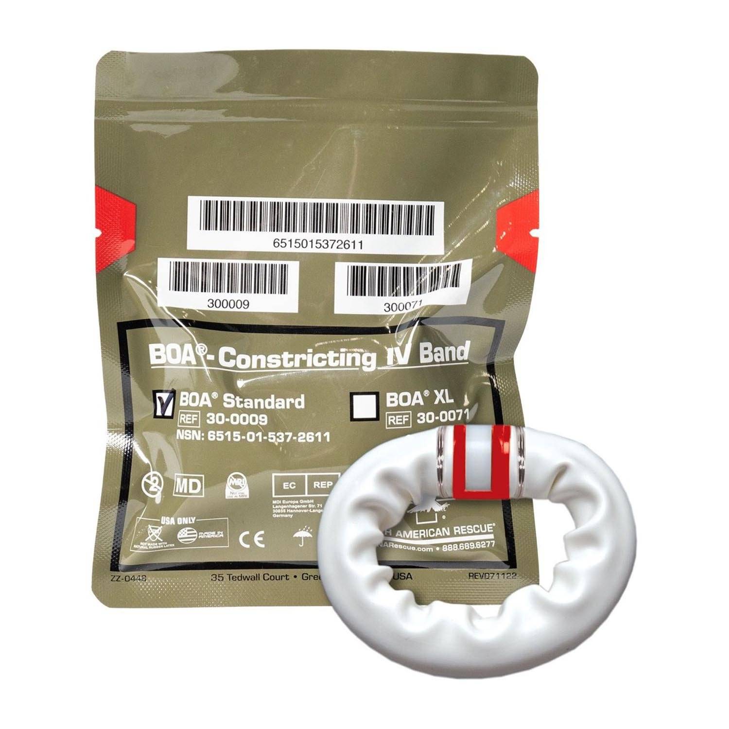 Originally designed for the Armed Forces, the North American Rescue BOA IV Constricting Band is now available for first responders as well. This device improves peripheral IV access for quick cannulation and uses a rolling action to transfuse venous blood to distal veins, while allowing for arterial flow. This process makes IV access much quicker in even the most challenging patients and is easy to work with a Quick Click connector and two-finger Quick Release.