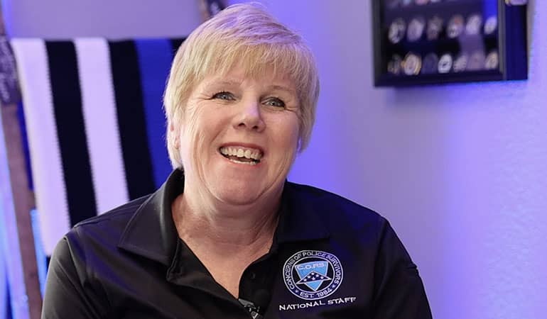 Retired Deputy Chief Bernhard works for Concerns of Place Survivors (COPS). Her dad was an Illinois state trooper with a life built on service, and she was able to witness him help other members of their small town.