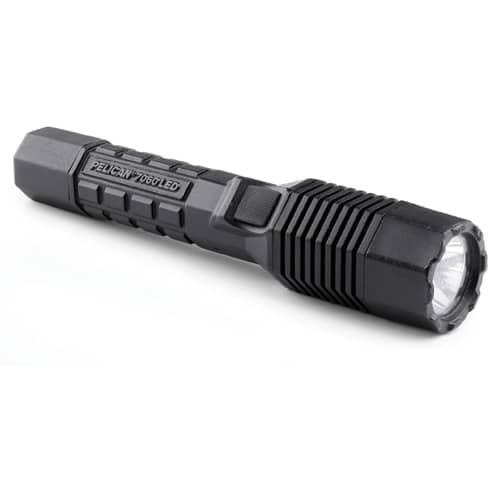Pelican 7060 Black LED Flashlight was developed in partnership with the LAPD, the Pelican 7060 LED flashlight comes with a versatile dual switch technology that allows activation from either body-mounted patrol or tail-mounted tactical switch. Lightweight and shock-resistant, it also comes with rechargeable 2200mAH lithium ion battery to ensure long-lasting use in critical operations.