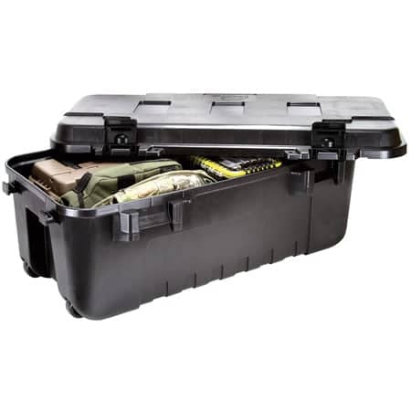 The Plano Storage Trunk allows you to conveniently store and transport all your duty gear in one large protective trunk. These high-impact plastic bins come in three sizes and are designed with durable reinforced lids that allow for units to be securely stacked on top of one another. The fully removable lids fit tightly on the base and clamp down in place with heavy-duty latches. Additionally, each features padlock tabs for added security.
