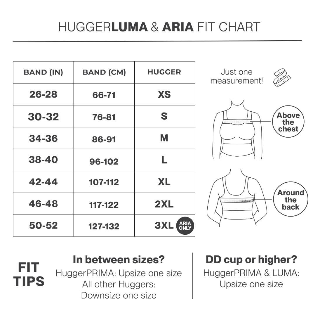 Prairie Wear HuggerLUMA Active High Compression Bra is an ultra supportive 360 zoned, gradient compression bra that will move with you, absorb high impact activity and wick away moisture. Easily fits under gear and is OEKO-TEX® STANDARD 100 Certified skin safe . Made to wear 24/7 without washing for multiple days to keep you comfortable and smell free. Built to last 10X longer than other bras. Easy care, machine wash and dry. Easy wear, seamless high performance for second skin, frictionless fit. Just 1 measurement fits band size 26” – 49”– see simple Fit Chart. Medium coverage and high compression. High active support index.