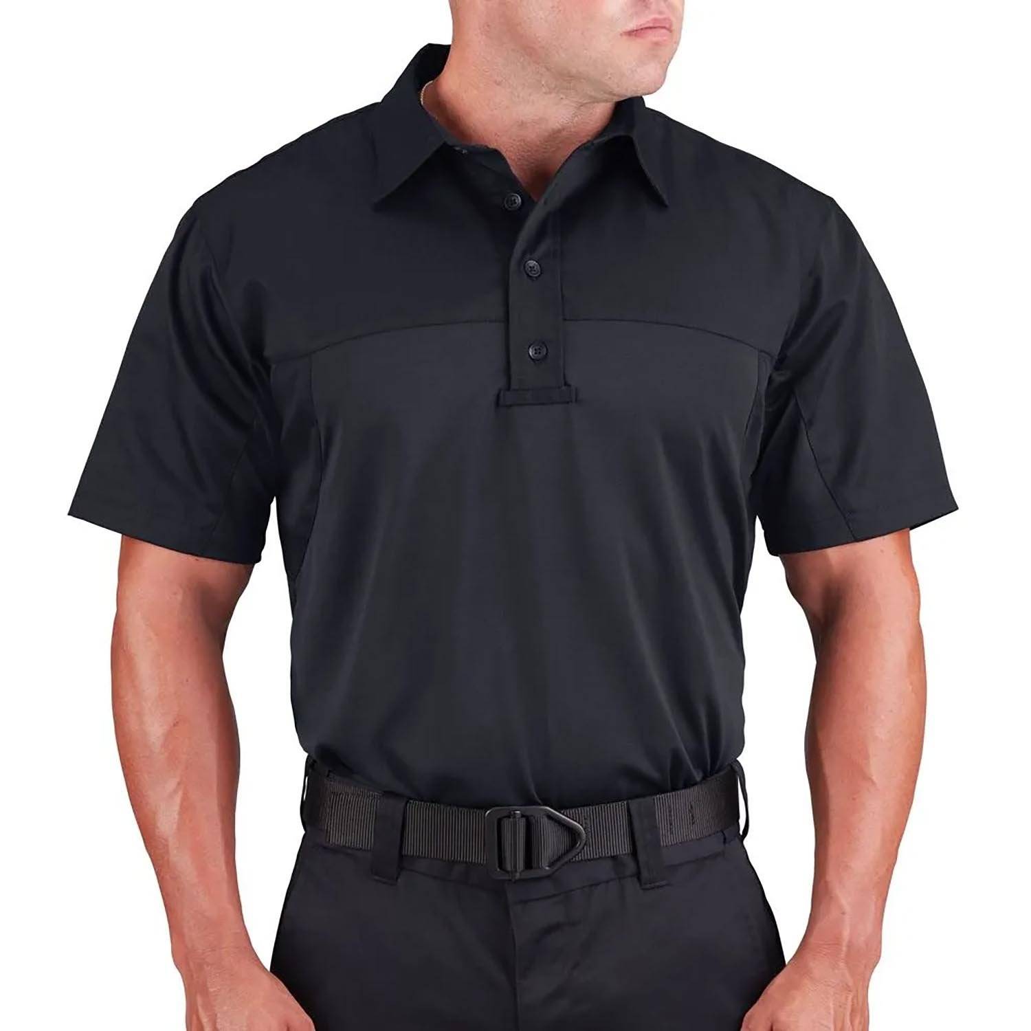Maximize comfort while maintaining professionalism. The PROPPER Men's Duty Uniform Armor Shirt features a strategic design pairing a snag- and a pill-resistant knit body for temperature regulation with a professional woven collar and sleeves for a sharp external look. This tactical shirt is enhanced with a Teflon™ soil and stain protector applied to the sleeves for durability and easy maintenance. The anti-odor design keeps you fresh, while the shirt collar construction with stays ensures a smart appearance. The included epaulet and badge tab kit add to your uniform look, and this duty shirt pairs perfectly with duty cargo pants.