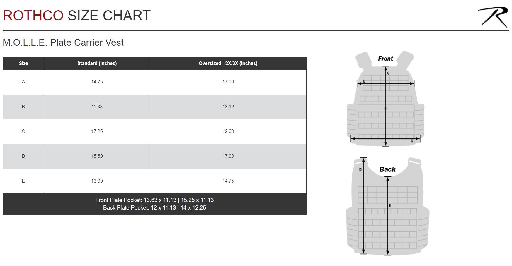 The Rothco MOLLE Plate Carrier Vest is a rugged, yet lightweight tactical vest that’s designed to provide ballistic protection with four plate armor pocket inserts. The internal plate pockets on the front and back have internal loop fields and can fit most soft armor or hard plates. For side protection, the detachable cummerbund will accept up to 6” x 7” side plates. There’s also MOLLE webbing strategically placed throughout the tactical plate carrier for attaching MOLLE pouches and accessories. For quick and easy removal, this ballistic vest has adjustable padded shoulder straps with quick release buckles.