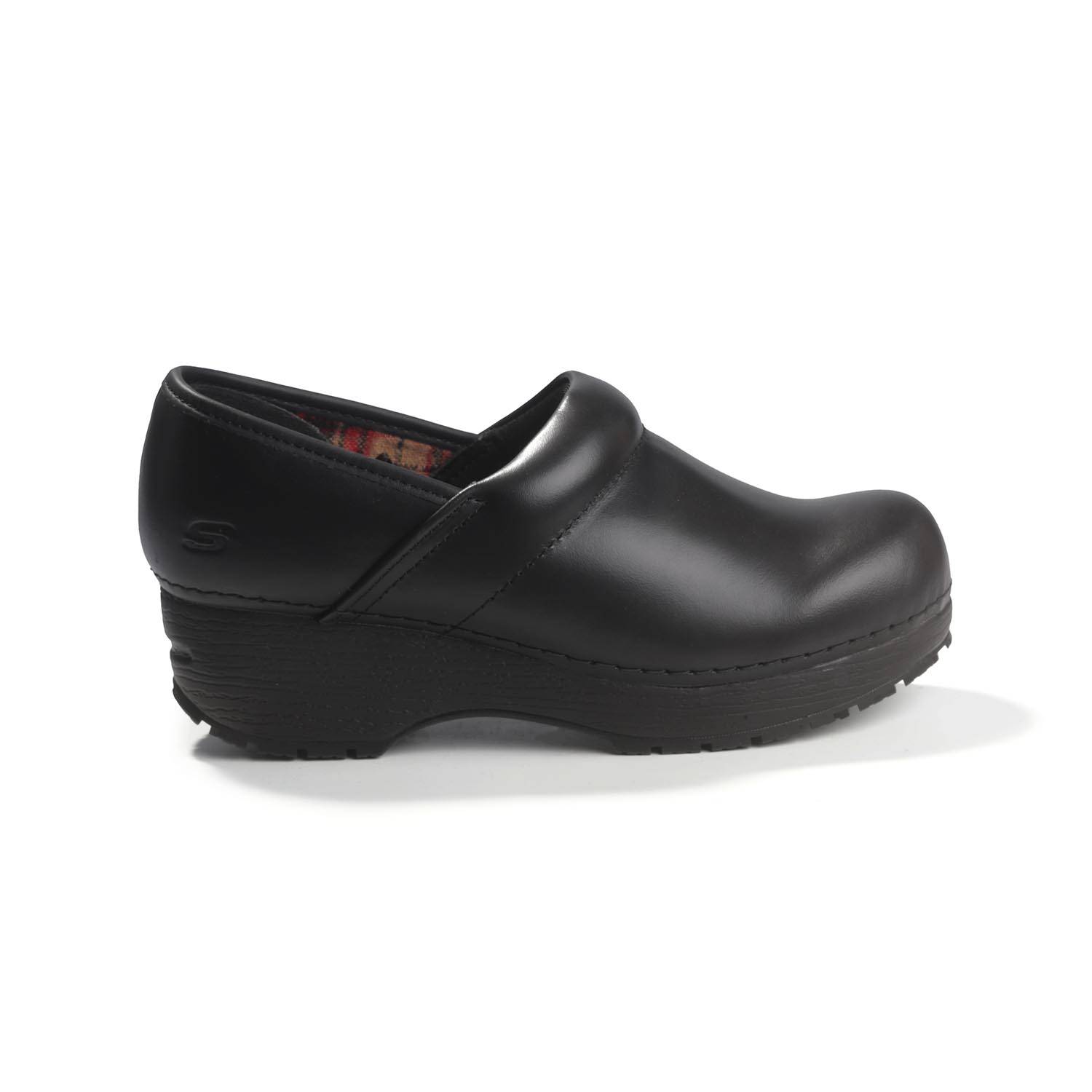 The Sketchers Ladies Work Clog SR - Candaba offers all-day comfort with a roomy design, smooth leather upper, and shock-absorbing midsole. Slip-resistant and EH safe, perfect for busy work environments.