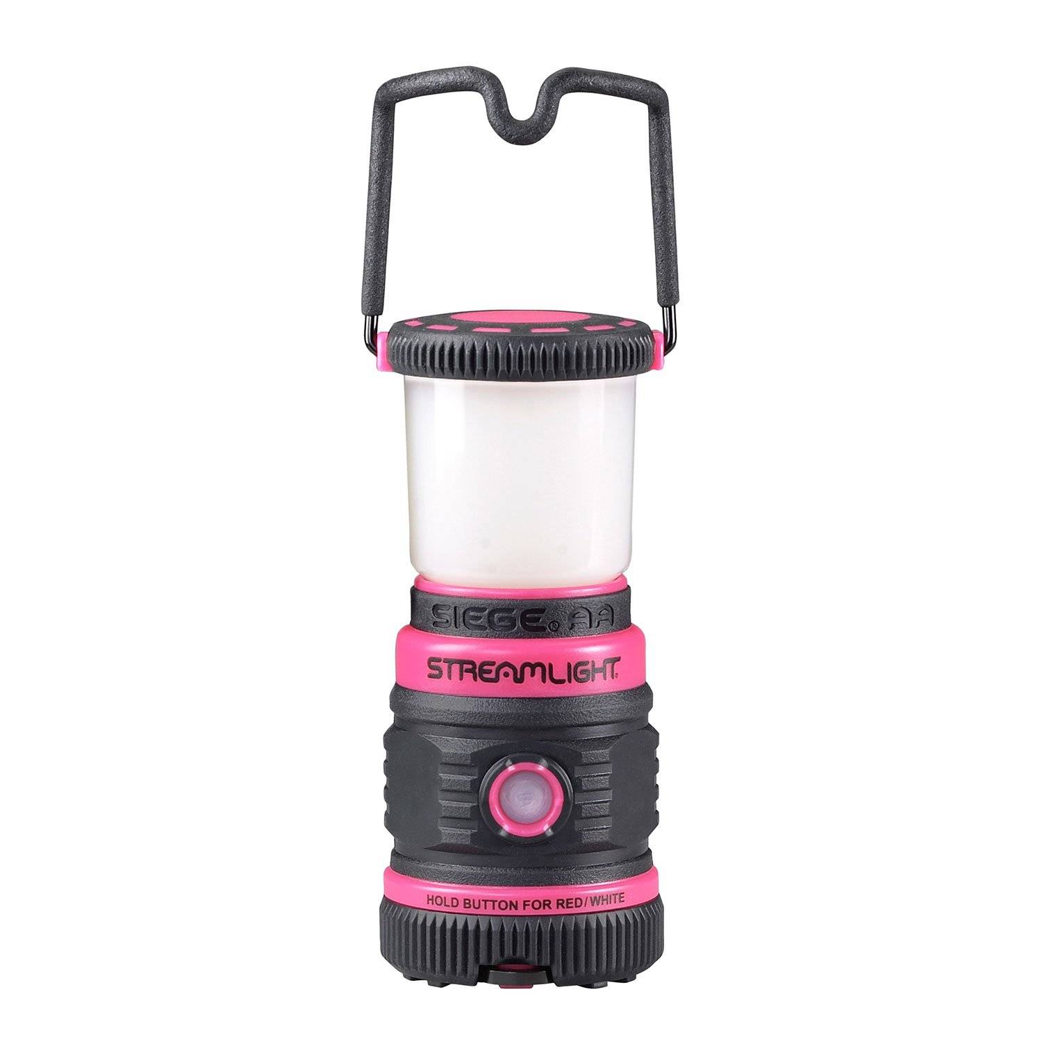 Durable, polymer construction with rubber-molded base provides stability on slippery or uneven surfaces. Stand lantern upright or hang it with the incorporated D-ring to use as an overhead light. Lantern floats so you can easily retrieve it if you drop it in the water. The Siege AA runs on economical, readily available AA alkaline batteries. Pink accents to support the Breast Cancer Research Foundation.