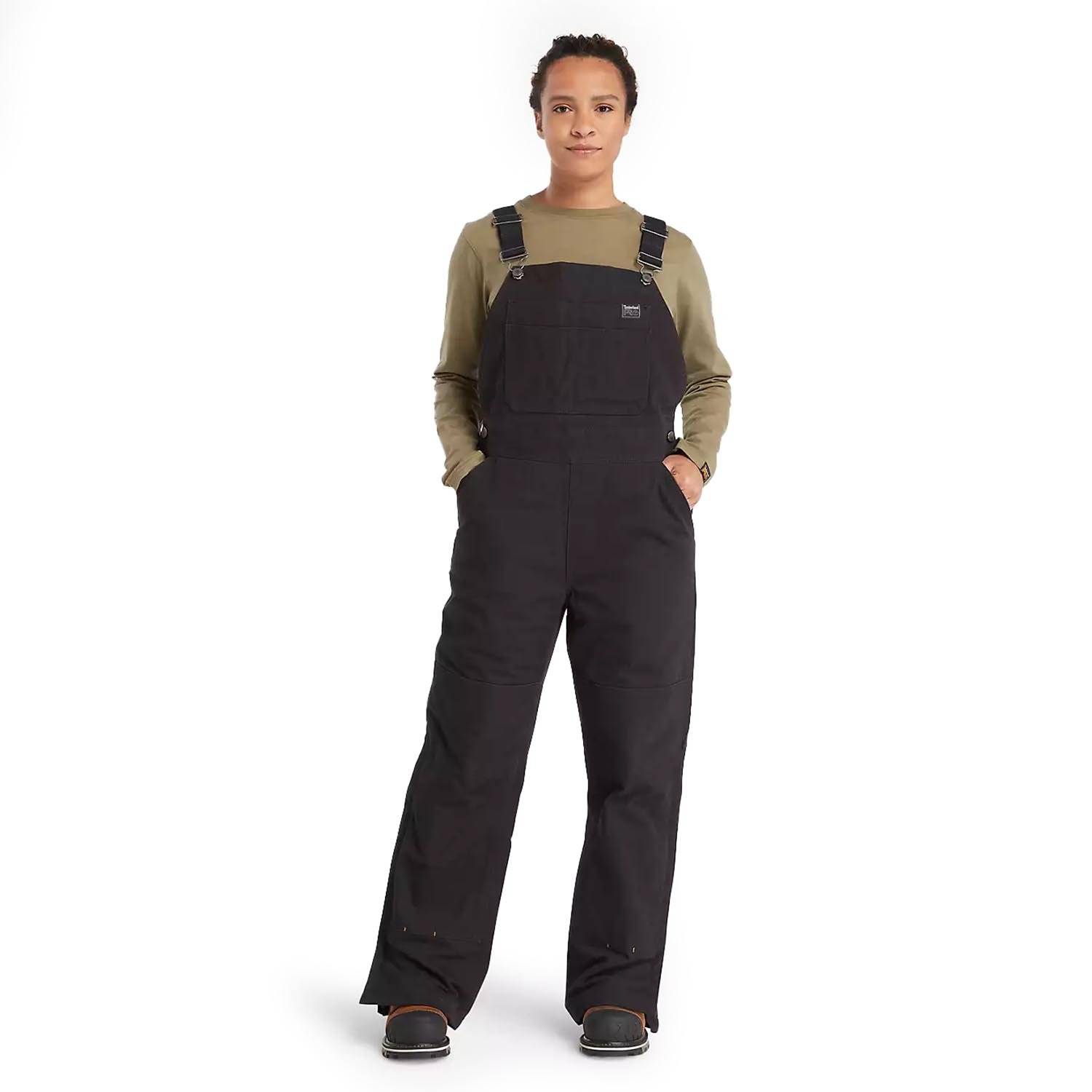 Designed specifically for women, Timberland PRO® Women's Gritman Insulated Bib Overalls feature lightweight, durable, Thermolite® T3 EcoMade insulation for superior warmth and breathability. Anatomically shaped back panel and stretch straps provide an improved fit. Loaded with functional pockets on hand, including a signature hammer loop. Zippered leg openings allow for easy-on over boots.