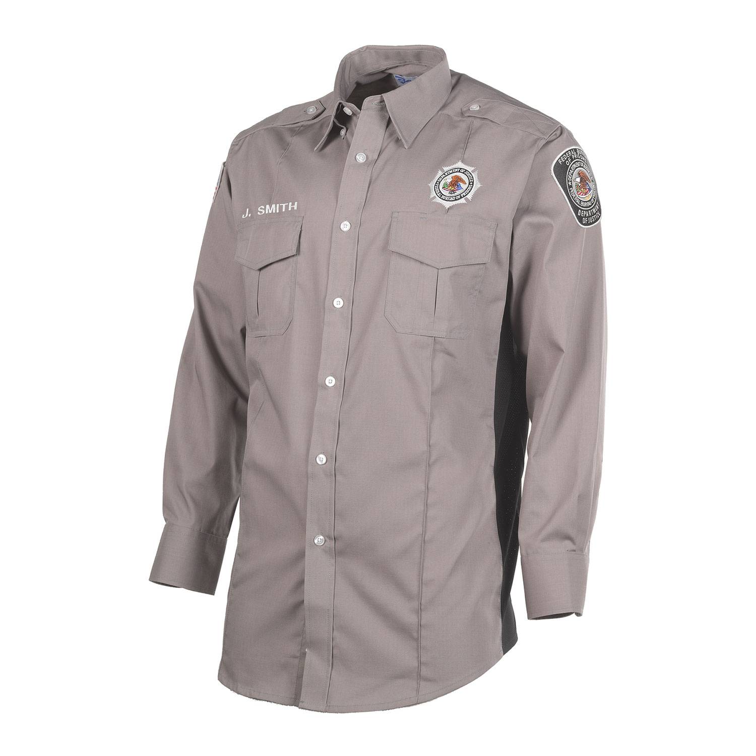 This top-quality FBOP Long-Sleeve Utility men’s uniform shirt is constructed in a nickel grey poly/rayon wicking fabric that helps keep you cool when you need it most. In addition, the Teflon fabric coating provides exceptional stain resistance and an easy-care permanent-press finish